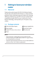 Table of contents 1 1.1 1.2 1.3 1.4 Getting to know your wireless router Welcome!.........................................................................................6 Package contents..........................................................................6 Your wireless router......................................................................7 Positioning your router...............................................................9 Mounting placement...............................................