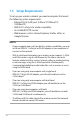 1.5 Setup Requirements To set up your wireless network, you need a computer that meets the following system requirements: • Ethernet RJ-45 (LAN) port (10Base-T/100Base-TX/ 1000BaseTX) • IEEE 802.11a/b/g/n/ac wireless capability • An installed TCP/IP service • Web browser such as Internet Explorer, Firefox, Safari, or Google Chrome NOTES: 10 • If your computer does not have built-in wireless capabilities, you may install an IEEE 802.11a/b/g/n/ac WLAN adapter to your computer to connect to the network.