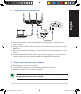 English 3. Set up your wireless environment. Wall Power Outlet RT-AC88U a d b Power Modem LAN c WAN Computer a. Insert your wireless router’s AC adapter to the DC-IN port and plug it to a power outlet. b. Using another network cable, connect your modem to your wireless router’s WAN port. c. Insert your modem’s AC adapter to the the DC-IN port and plug it to a power outlet. d. Using the bundled network cable, connect your computer to your wireless router’s LAN port.