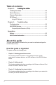 Table of contents About this guide..................................................................................... 4 How this guide is organized............................................................... 4 Conventions used in this guide.......................................................... 5 Chapter 1: Knowing your wireless router Package contents................................................................................... 6 System requirements..........................................