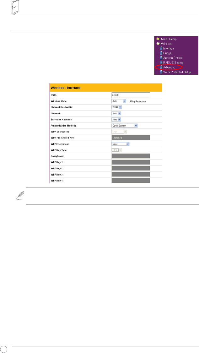 Note: For 802.11n performance, select 40MHz bandwidth. Channel option will
