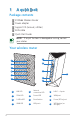 1 A quick look Package contents RT-N56U Wireless Router Power adapter Support CD (manual, utilities) RJ45 cable Quick Start Guide NOTE: If any of the items is damaged or missing, contact your retailer. Your wireless router 7 1 8 2 3 9 4 12 5 10 6 11 1 USB LED 5 Internet connection LED 9 LAN 1 ~ 4 ports 2 5GHz LED 6 Power LED 10 WAN port 3 2.