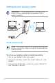 Wireless connection (B) To set up your wireless router via wireless connection: 1. Turn on your wireless router and modem. 2. Using an RJ-45 cable, connect the router’s WAN port to the modem. 3. Install an IEEE 802.11a/b/g/n WLAN adapter on your computer. NOTES: • For details on connecting to a wireless network, refer to the WLAN adapter’s user manual. • To set up the security settings for your network, refer to the section Setting up the wireless security settings in this user manual.