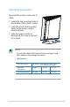 Mounting placement To mount the wireless router into its stand: 1. Locate the two mounting holes at the bottom of the wireless router. 2. Latch the stand’s two mounting hooks to the wireless router’s mounting holes. 3. Slide the wireless router to direction of the arrow to secure it to its stand. 2 2 3 NOTES: • Use only the adapter that came with your package. Using other adapters may damage the device. • Specifications: DC Power adapter DC Output: +19V with max 1.