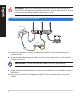 English WARNING! Before disconnecting the wires/cables, ensure that your cable/ADSL modem has been turned off for at least two minutes. If your modem has a backup battery, remove it as well. 2. Set up your wireless environment. Wall Power Outlet RT-N66U b a WAN Modem d LAN c Power Computer Power a: Insert your wireless router’s AC adapter to the DC-In port and plug it to a power outlet. b: Using the bundled network cable, connect your computer to your wireless router’s LAN port.