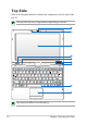 Top Side Refer to the diagram below to identify the components on this side of the Eee PC. The top side may vary in appearance depending on model. 1 2 3 4 5 6 7 8 9 The keyboard differs for each territory.