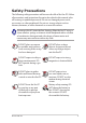 Safety Precautions The following safety precautions will increase the life of the Eee PC. Follow all precautions and instructions. Except as described in this manual, refer all servicing to qualified personnel. Do not use damaged power cords, accessories, or other peripherals. Do not use strong solvents such as thinners, benzene, or other chemicals on or near the surface. Disconnect the AC power before cleaning.