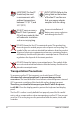 Bottom Side Refer to the diagram below to identify the components on this side of the Eee PC. The bottom side may vary in appearance depending on model. 5 3 2 1 4 The bottom of the Eee PC can get very hot. Be careful when handling the Eee PC while it is in operation or recently been in operation. High temperatures are normal during charging or operation. DO NOT use on soft surfaces such as beds or sofas, which may hinder heat dissipation.