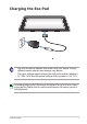 Charging the Eee Pad • Use only the power adapter that comes with your device. Using a different power adapter may damage your device. • The input voltage range between the wall outlet and this adapter is AC 100V–240V, and the output voltage of this adapter is 15V, 1.2A. To prolong battery life, fully charge the battery for up to 8 hours when using the Eee Pad for the first time and whenever the battery power is fully depleted.