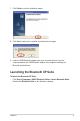 7. Click Finish to exit the installation wizard. 8. Click Yes to restart your computer and activate the changes. 9. Insert the USB Bluetooth adapter after your computer reboots, then the computer detects the USB Bluetooth adapter and completes installing the Bluetooth profile drivers. Launching the Bluetooth XP Suite To launch the Bluetooth XP Suite: • • Click Start > Programs > ASUS Bluetooth Suite > Launch Bluetooth Suite. Double-click Bluetooth Suite on the Windows® desktop.