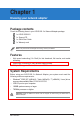 Table of Contents Chapter 1: Knowing your network adapter Package contents .................................................................................. 5 Features .................................................................................................. 5 System Requirements ........................................................................... 5 LED status indicators ............................................................................