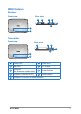 WAVI features Receiver Front view Rear view 3 5 6 7 8 9 1 2 Transmitter Front view Rear view 6 4 7 8 9 1 2 1 Power LED 6 HDMI port 2 7 DC-In port 8 Power button 4 WiFi LED LAN port (for firmware update only) USB port (connect to PC) 9 Reset button 5 USB ports (connect to other devices) 3 ASUS WAVI