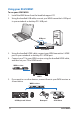 Using your ASUS WAVI To use your ASUS WAVI: 1. Install the WAVI driver from the bundled support CD. 2. Using the bundled USB cable, connect your WAVI transmitter's USB port to your notebook or desktop PC's USB port. ON USB port OFF Transmitter 3. Using the bundled HDMI cable, connect your WAVI transmitter's HDMI port to your notebook or desktop PC's HDMI port. 4. Connect your TV to your WAVI receiver using the bundled HDMI cable, and then set your TV to HDMI mode. WAVI receiver HDTV 5.