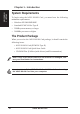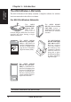 Chapter 1 - Introduction Chapter 1 Introduction System Requirements To begin using the ASUS WLAN Card, you must have the following minimum requirements: • • • • Windows XP/2000/ME/98SE Standard PCMCIA Slot Type II 32MB system memory or larger 300MHz processor or higher The Product Package When you receive the ASUS WLAN Card package, it should contain the following items: • ASUS WLAN Card (PCMCIA Type II) • ASUS WLAN Card Quick Start Guide • CD-ROM Disc (Utilities (with drivers) and Documentation) Note: I
