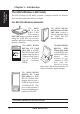 Chapter 1 - Introduction Chapter 1 Requirements System Requirements To begin using the ASUS WLAN Card, you must have the following minimum requirements: • • • • Windows XP/2000/ME/98SE Standard 32-bit PCI Slot 32MB system memory or larger 300MHz processor or higher The Product Package When you receive the ASUS WLAN Card package, it should contain the following items: • • • • ASUS WLAN PCI Card ASUS WLAN Card Quick Start Guide ASUS WLAN Card User’s Manual CD-ROM Disc (Drivers, Utilities, Documentation) I