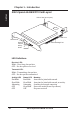 Chapter 1 - Introduction Industry Standards: Host Interface: Antenna: Chapter 1 ASUS SpaceLink B&W Specifications Bluetooth, IEEE802.11a, IEEE802.11b ASUS BlueMagic PCI Integrated Bluetooth and dual-band wireless LAN Bluetooth Operating Freq: Data Rate: Range: Architecture: 2.4GHz to 2.5GHz 1 Mbps Up to 10 meters Piconet, scatter net IEEE802.11a Operating Freq: Data Rate: Range: Architecture: 5.15GHz to 5.35GHz, 5.725GHz to 5.