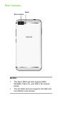 Rear features Rear camera Flash NOTES: • • The Nano SIM card slots support GSM, WCDMA, FDD-LTE, and TDD-LTE network bands. The microSD card slot supports microSD and microSDXC card formats.