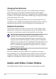 Left Side 1 1 2 3 Power (DC) Input The supplied power adapter converts AC power to DC power for use with this jack. Power supplied through this jack supplies power to the Eee PC and charges the internal battery pack. To prevent damage to the Eee PC and battery pack, always use the supplied power adapter. THE ADAPTER MAY BECOME WARM TO HOT WHEN IN USE. BE SURE NOT TO COVER THE ADAPTER AND KEEP IT AWAY FROM YOUR BODY. 2 USB Port (2.0/1.