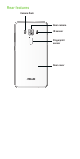 Side features Audio jack Microphone Micro SIM, nano SIM/ microSD combo card slot Volume key Power key Microphone USB Type-C port Speaker NOTES: • • The micro SIM card slot supports GSM/ GPRS/EDGE, WCDMA/HSPA+/DC-HSPA+, TD-SCDMA, CDMA2000, FDD-LTE, and TDLTE DSDS network bands. The microSD card slot supports microSD and microSDHC card formats.