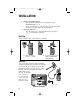 2462_00_1 ATT CIB 1/28 1/28/02 9:52 AM Page 5 INSTALLATION Handset Charger Installation 1 Connect the power cord. Feed the power cord through the strain-relief channel on the bottom of the handset charger. Then plug the cord into an electrical outlet not controlled by a wall switch. CHARGING Light: on when handset is in charging stand 2 Install the handset battery. Use only the battery supplied with this handset or AT&T Accessory Battery Model 2401, SKU# 91077.