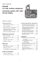 User's manual E2812B 2.4 GHz cordless telephone/ answering system with caller ID/call waiting FLASH CLEAR TONE MUTE REDIAL DELETE PAUSE INT Table of contents Getting started Answering system operation Answering system operation...... 33 Day & time announcements........ 34 Outgoing announcements............ 35 Changing feature options............. 36 Message playback............................ 37 Recording & playing memos............. 38 Message counter displays............