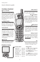 Getting started Quick reference guide Telephone base CHARGE/IN USE • Flashes when another telephone is on the same line or one of the handsets is in use. • Flashes when the answering system is answering an incoming call. • Flashes quickly when there is an incoming call. • On steady when the handset is properly positioned to charge in the telephone base. HANDSET LOCATOR Press to make handsets beep (page 12). SETUP ANNC Press to review or change answering system options (page 36).