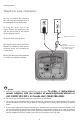 Getting started Installation options 3. To attach the bracket for wall mounting, insert the tabs of the bracket into slots and on the telephone base, then press the other bracket tabs into slots and as shown on the right. 4. Plug the power adapter into an electrical outlet not controlled by a wall switch. Plug the telephone line cord into a telephone wall jack. To mount the telephone on the wall, position the mounting holes and over the telephone outlet mounting studs.