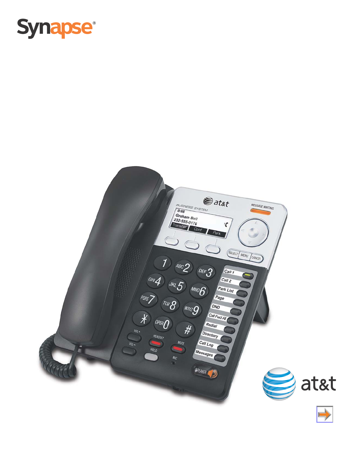 Synapse SB67020/SB67025 Deskset User’s Guide Back to Contents CHAPTER 1 OVERVIEW The Synapse® Business Phone System from AT&T is for businesses that need up to 100 extensions. This system is scalable from 1 to 39 outside lines, so as your business grows, your phone system can too. The Synapse Business Phone System provides simplicity without sacrifice—it's simple to install, manage, and use, without sacrificing any of the features you need and expect from a business telephone system.