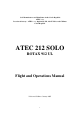 Type of aeroplane ATEC 212 SOLO Serial number …………………………………………………… Identification label …………………………………………………… LAA CR type licence …………………… issued …………………… This aircraft is not registered at the state office and is to be operated at operator’s own responsibility The aeroplane must be operated according to the information and limits of this flight manual.