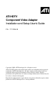 ATI HDTV Component Video Adapter Installation and Setup User’s Guide P/N: 117-70104-30 Copyright © 2003, ATI Technologies Inc. All rights reserved. ATI and all ATI product and product feature names are trademarks and/or registered trademarks of ATI Technologies Inc. All other company and/or product names are trademarks and/or registered trademarks of their respective owners. Features, performance and specifications are subject to change without notice. Product may not be exactly as shown in the diagrams.