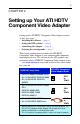 Contents Getting Started .......................................................................1 System Requirements .................................................................................... 2 Warranty ........................................................................................................ 2 HDTV Kit Contents....................................................................................... 2 Setting up Your ATI HDTV Component Video Adapter ......