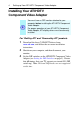 Using Your ATI HDTV Component Video Adapter 7 CHAPTER 3 Using Your ATI HDTV Component Video Adapter Use the HDTV Component Video Adapter to watch DVD movies and play video games on your High Definition Television. i Copy-protected DVDs restrict playback to 480i and 480p modes. For maximum performance when you watch DVD movies or play computer games on your HDTV, you should find the mode and screen resolution that provide the best result on your TV, and use those settings exclusively.