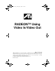 4012220.fm Page 1 Friday, July 7, 2000 11:23 AM RADEON™ Using Video In/Video Out P/N: 117-40122-20 ATI and RADEON are registered trademarks of ATI Technologies Inc. Windows is a registered trademark of Microsoft Corporation in the United States and/or other countries. Products may not be exactly as shown. Features, performance, and specifications may vary depending on operating environment and are subject to change without notice. Copyright © ATI Technologies Inc. 2000. All rights reserved.