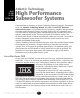 Atlantic Models 222 PBM, 262 PBM and 352 PBM THX TECHNOLOGY Example 1: Subwoofer Line Out/Low Level In Receiver/Amplifier This is the most commonly used system connection for systems with Dolby Pro Logic receivers. Sub Woofer Out LOW LEVEL INPUT L/MONO R LOW LEVEL INPUT HI LEVEL INPUT L/MONO R L/MONO R IN IN THRU This arrangement is for owners of stereo receivers/ amplifiers with Preamp outputs.