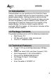 SUMMARY 1.1 Introduction ..................................................................... 6 1.2 Package Contents .......................................................... 6 1.3 Technical Features ......................................................... 6 1.4 Hardware Requirements................................................. 7 1.5 Software Installation ....................................................... 7 1.6 Driver Installation ............................................................ 8 1.