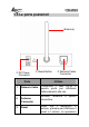 FRANCAIS 1.3 Face arrière Port 1 Cable réseau 2 Antenne 3 Bouton Reset (remise à zéro) Usage Reliez directement avec un câble Ethernet standard ou croisé aux PC ou à un port uplink (Hub/Switch). Vissez l'antenne à ce connecteur Dispositif allumé, pressez pour effectuer le reset ou la restauration usine.