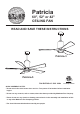 Patricia 60", 52" or 42" CEILING FAN READ AND SAVE THESE INSTRUCTIONS Patricia-3 Patricia-5 FAN RATING AC 120V. 60Hz For Damp Location QUICK ASSEMBLY NOTES: * Do not wire in fan while house wires are Live. Turn power off at breaker before installation begins. * Do not use any controls, wall or remote, other than those provided by Matthews Fan Company. * Please do not use any electric or battery powered tools in the assembly and installation of this or any other Matthews Fan Company product.