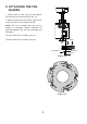9. ATTACHING THE MOUNTING PLATE Step 1. Remove 1 of the 3 screws from the mounting ring and keep it for future use. Loosen the other 2 screws. (Do not remove) Step 2. Place the key holes on the mounting plate over the 2 screws previously loosened from the mounting ring, turn mounting plate until it locks in place at the narrow section of the key holes. Secure by tightening the 2 screws previously loosened and the one previously removed. (Fig. 16) Mounting plate 10.
