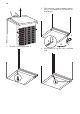 7. Monter hængslet på modsatte side. 11. Skru hængslet fast. 8. Skru de to justeringsfødder i. 9. Skru skruerne i dørens øverste hængsel ud. 10. Tag hængslet af. Flyt tappen i pilens retning. Monter hængslet på modsatte side. 12. 13. 14. 15. 1 3 2 Sæt toppladen på. Skub toppladen fremefter. Skru de to skruer på bagsiden i. Fjern grebet, og montér det 3) i den modsatte side. 1 3 2 16. Sæt skabet på plads, bring det i vater, og vent mindst fire timer med at slutte det til lysnettet.