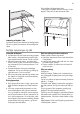 De indstilles på følgende måde: Træk gradvis hylden i pilenes retning, til den slipper. Sæt den på det ønskede sted. Isætning af hylder i dør Hylderne i døren kan sættes i forskellig højde, så der er plads til madvarer af forskellig størrelse. Nyttige oplysninger og råd Normale driftslyde • Undertiden kan der høres en svag gurglen eller boblen, når kølemidlet pumpes gennem spiralerne eller rørene. Det er normalt.