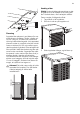 Vending af dør Vigtigt Under de følgende operationer er det en god idé at få en hjælper til at holde godt fast i skabets døre, mens arbejdet udføres. 1 Døren vendes på følgende måde: 1. Tag stikket ud af kontakten. 2. Skru de to skruer på bagsiden ud. 2 Placering Apparatet bør placeres i god afstand fra varmekilder som radiatorer, kedler, direkte sollys osv. Sørg for, at luften kan cirkulere frit omkring kabinettets bagside.