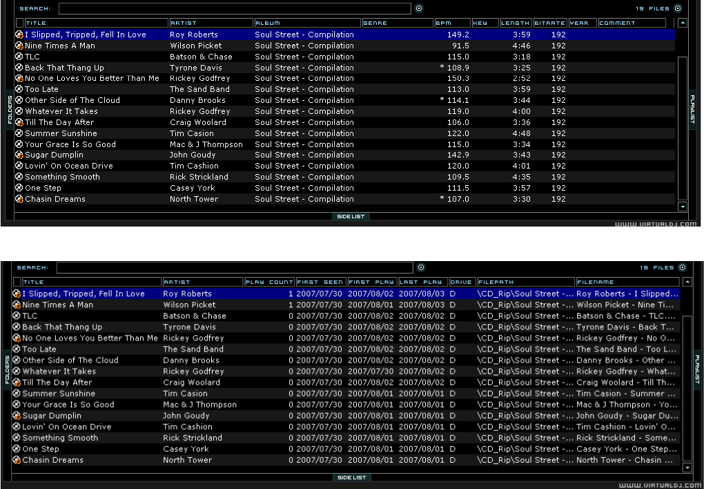 Displaying VirtualDJ data fields (ID3Tag) Columns (cont’d)