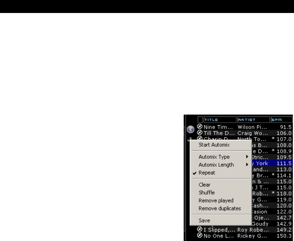 Playlist. Once all tracks have been played, the Automix will start over again with the first track