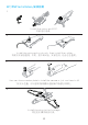 KIT/PNP Installation/安装指南 1 Install the motor and ESC. 安装电机电调。 2 Install the servo and push rods, then install the rudder. 将舵机安装到垂尾、平尾,居中调试后,安装拉杆。粘合左右垂尾。 3 User can choose carbon plate to install the camera or just use foam to fill. ⻜机机头位置,可以选择安装摄像头固定碳⽚或者泡沫填充。 4 Install the wing to the fuselage.