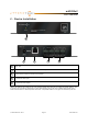 unDIO2x2 User Manual 2 – Device Installation 1 Power LED 2 Power Socket – Use with optional 12 V DC wall wart only 3 Dante® Ethernet interface connector and indicators 4 2 x Balanced audio inputs 5 2 x Balanced Audio outputs *Note: The unDIO2x2 has a label on one of the mounting flanges that shows the last 6 digits of the MAC address.