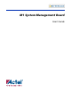 Introduction The Actel M1 System Management Board Development Kit provides an excellent platform for developing system management applications and/or applications with a microprocessor. The kit includes a CortexTM-M1-enabled Fusion device, a system management GUI, and a platform (Figure 1) for systems that performs the following functions: • Power-up detection • Power sequencing • Thermal management • Sleep modes • System diagnostics • Remote communications • Clock generation and management Figure 1.