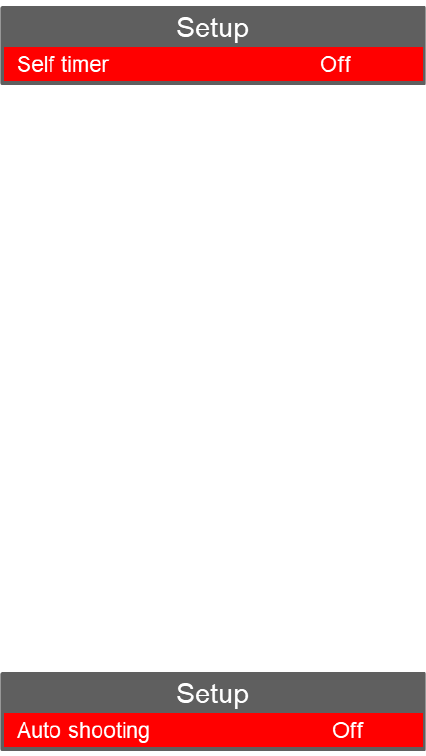 Off – no delay. A still image will be taken on press of the PHOTO button