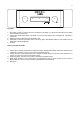 1 3 4 5 2 Front panel 1) 2) 3) 4) 5) Input selector. It allows you to choose the source visualizing it on the display. If you turn the knob when the unit is in standby mode, it will switch to normal mode. Volume control. Fading level is shown on the display. If you turn the knob when the unit is in standby mode, it will switch to normal mode. Standby led. It lights red when the unit is in the standby mode. PLED display. It shows the pre-amplifier status or the set-up options.