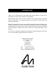 CONTACT INFORMATION If in the future your Audio Note (UK) product requires servicing, or if you require technical support or have any questions regarding this or any of our other products, please contact your local Audio Note (UK) dealer. Alternatively, please feel free to contact us directly: -! Audio Note (UK) Limited 25 Montefiore Road Hove East Sussex BN3 1RD United Kingdom Tel: +44 (0)1273 220 511 Fax: +44 (0)1273 731 498 e-mail: info@audionote.co.