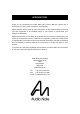 CONTACT INFORMATION If in the future your Audio Note (UK) product requires servicing, or if you require technical support or have any questions regarding this or any of our other products, please contact your local Audio Note (UK) dealer. Alternatively, please feel free to contact us directly: -! Audio Note (UK) Limited 25 Montefiore Road Hove East Sussex BN3 1RD United Kingdom Tel: +44 (0)1273 220 511 Fax: +44 (0)1273 731 498 e-mail: info@audionote.co.